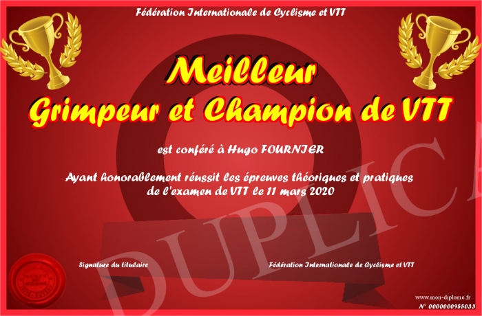 Envoyez par email votre Meilleur Grimpeur et Champion de VTT personalisé