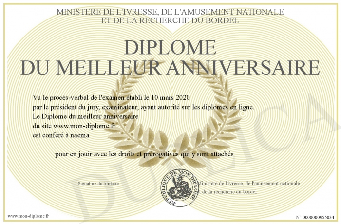Envoyez par email votre Diplôme du meilleur anniversaire personalisé