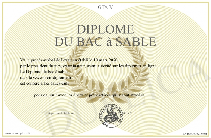 Envoyez par email votre Diplôme du bac à sable personalisé