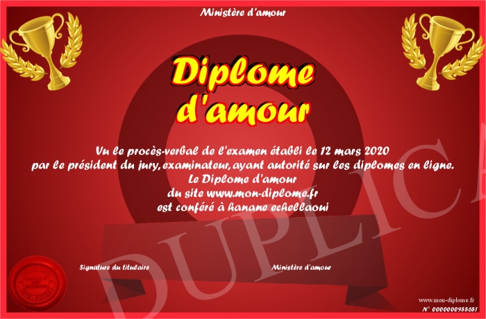 Envoyez par email votre Diplôme d'amour personalisé