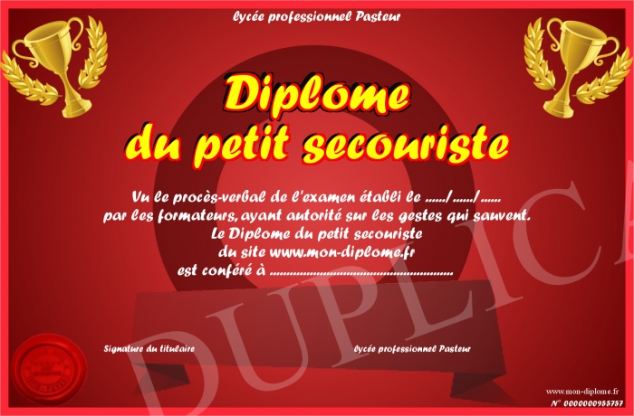 Envoyez par email votre Diplôme du petit secouriste personalisé