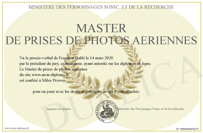 Envoyez par email votre Master de prises de photos aériennes personalisé