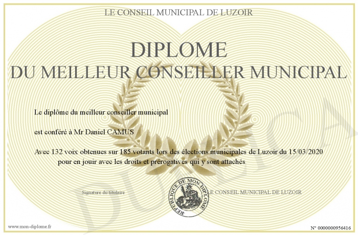 Envoyez par email votre Diplôme du meilleur conseiller municipal personalisé