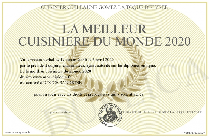 Envoyez par email votre la meilleur cuisiniere du monde 2020 personalisé