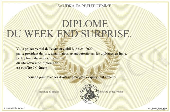 Envoyez par email votre Diplôme du week end surprise. personalisé