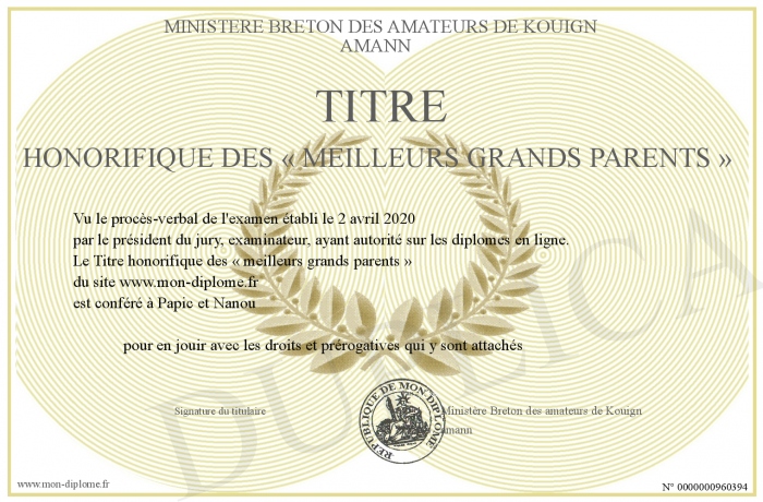 Envoyez par email votre Titre honorifique des « meilleurs grands parents » personalisé