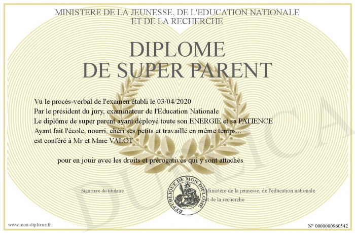 Envoyez par email votre Diplôme de SUPER PARENT personalisé