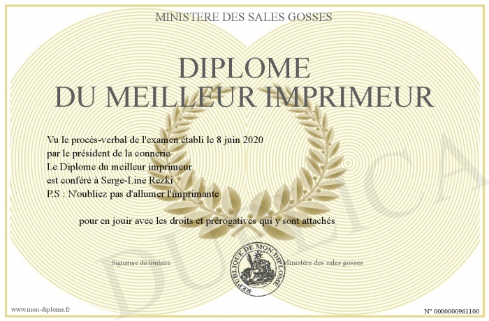 Envoyez par email votre Diplôme du meilleur imprimeur personalisé