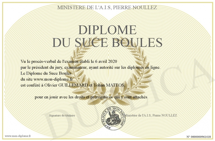 Envoyez par email votre Diplôme du Suce Boules personalisé