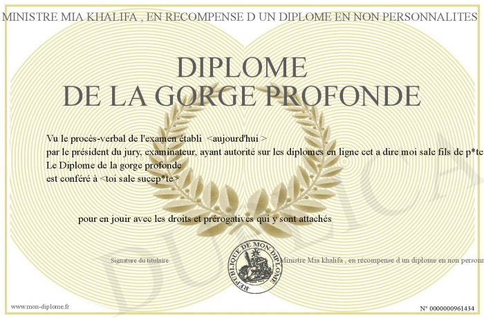 envoyé par le Ministre Mia khalifa , en récompense d un diplome en non personnalités !