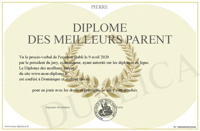Envoyez par email votre Diplôme des meilleurs parent personalisé