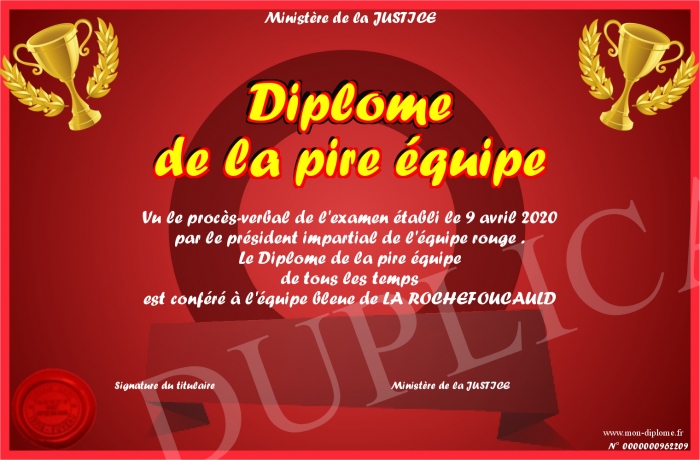 Envoyez par email votre Diplôme de la pire équipe personalisé