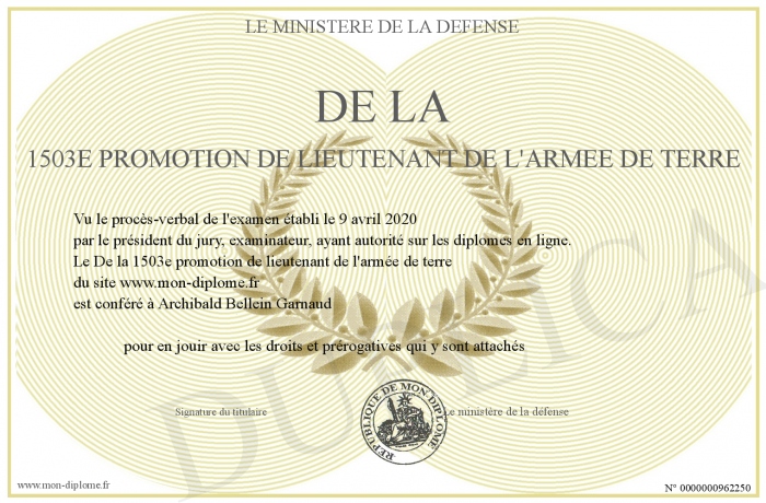 Envoyez par email votre De la 1503e promotion de lieutenant de l'armée de terre personalisé