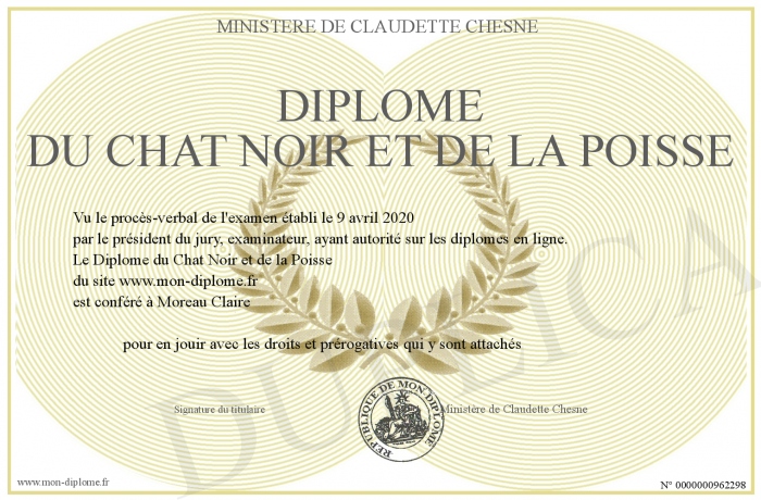Envoyez par email votre Diplôme du Chat Noir et de la Poisse personalisé