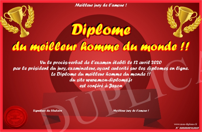 Envoyez par email votre Diplôme du meilleur homme du monde !! personalisé