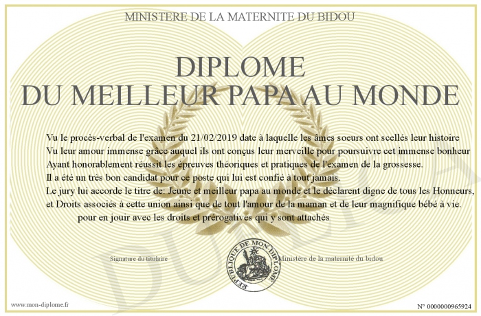 Envoyez par email votre Diplôme du meilleur papa au monde personalisé