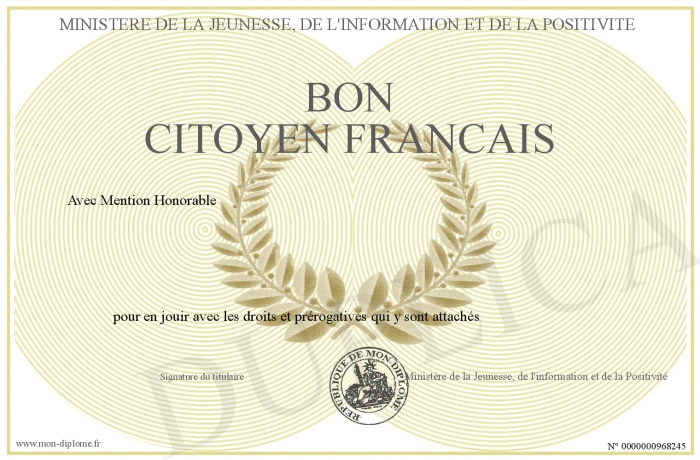 Envoyez par email votre Bon Citoyen francais personalisé