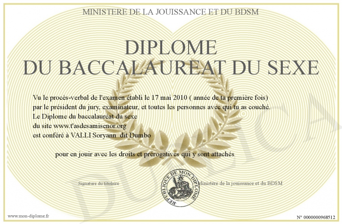 Envoyez par email votre Diplôme du baccalauréat du sexe personalisé
