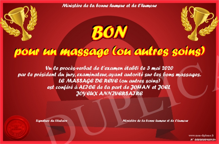Envoyez par email votre BON pour un massage (ou autres soins) personalisé