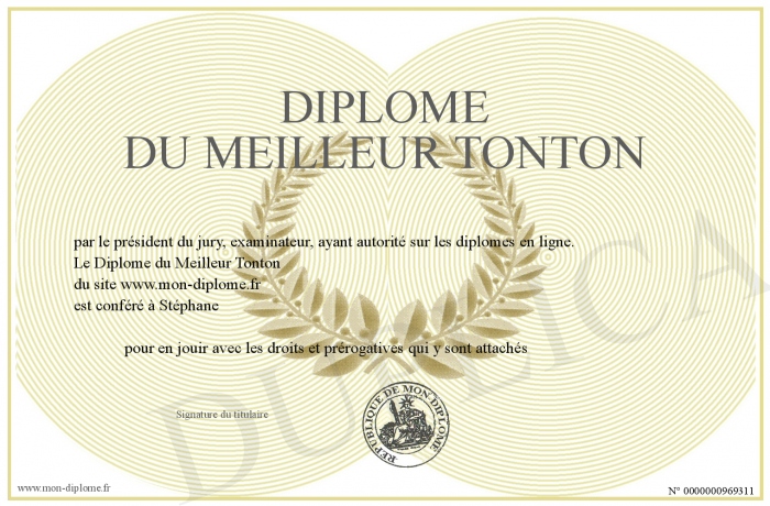 Envoyez par email votre Diplôme du Meilleur Tonton personalisé