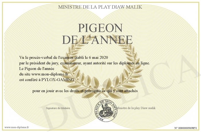 Envoyez par email votre Pigeon de l'année personalisé