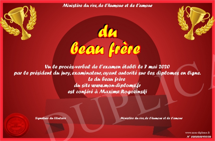 Envoyez par email votre du beau frère personalisé