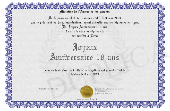 Envoyez par email votre Joyeux Anniversaire 18 ans personalisé