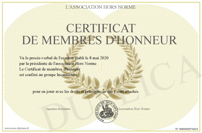 Envoyez par email votre Certificat de membres d'honneur personalisé