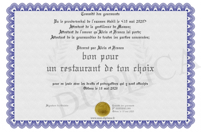 Envoyez par email votre bon pour un restaurant de ton choix personalisé