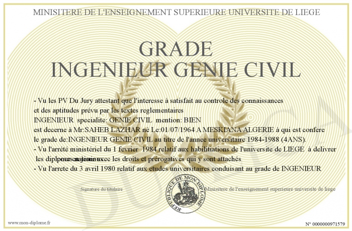 envoyé par le Minisitere de l'enseignement superieure universite de liege !