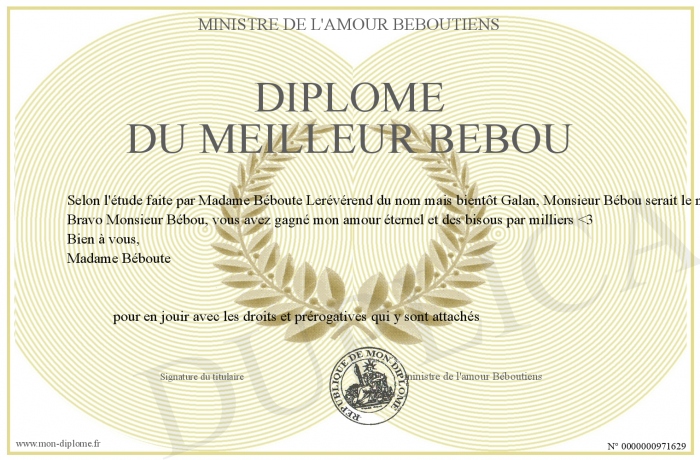 Envoyez par email votre Diplôme du meilleur Bébou personalisé