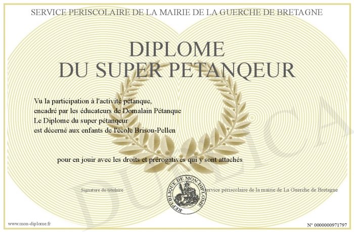 Envoyez par email votre Diplôme du super pétanqeur personalisé