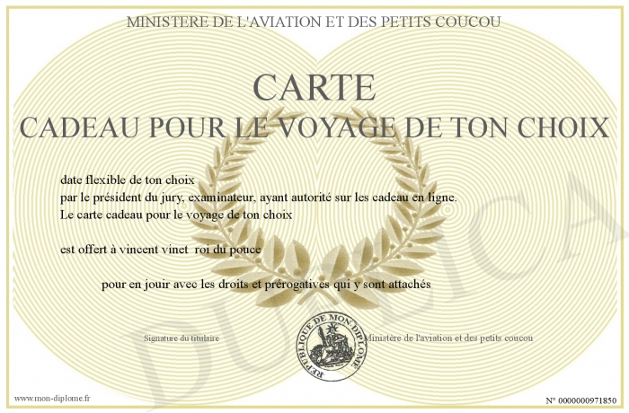 envoyé par le Ministère de l'aviation et des petits coucou !