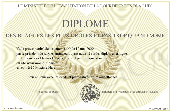 Envoyez par email votre Diplome des blagues les plus droles et pas trop quand même personalisé