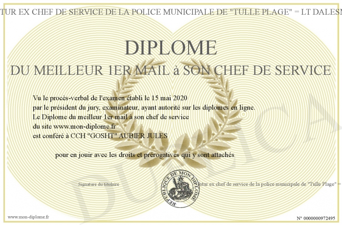 Envoyez par email votre Diplôme du meilleur 1er mail à son chef de service personalisé
