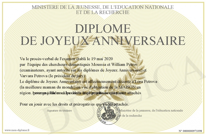 Envoyez par email votre Diplôme de Joyeux Anniversaire personalisé