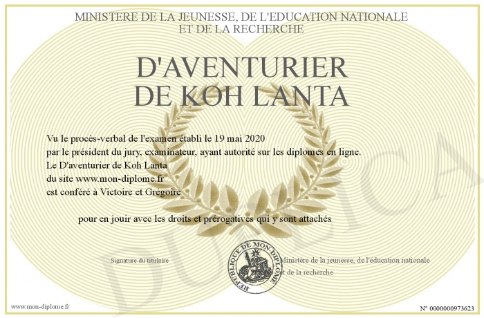 Envoyez par email votre D'aventurier de Koh Lanta personalisé