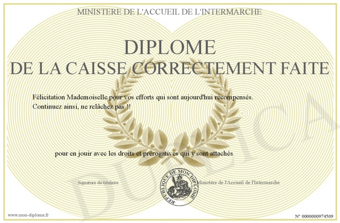Envoyez par email votre Diplôme de la caisse correctement faite personalisé