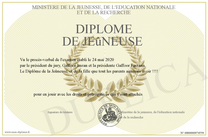 Envoyez par email votre Diplôme de jeûneuse personalisé
