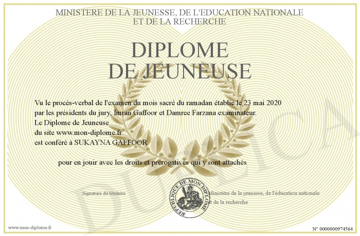 Envoyez par email votre Diplôme de Jeuneuse personalisé