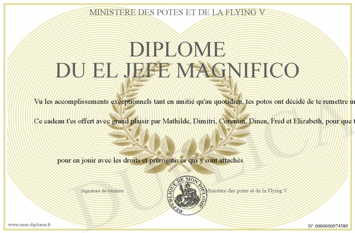 Envoyez par email votre Diplôme du El Jefe Magnifico personalisé
