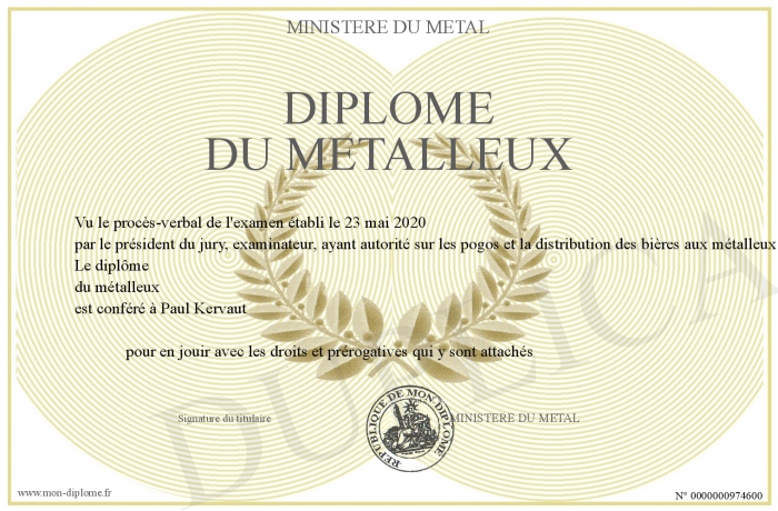Envoyez par email votre DIPLOME DU METALLEUX personalisé
