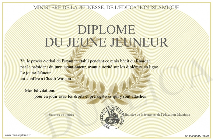 Envoyez par email votre Diplôme du Jeune Jeuneur personalisé