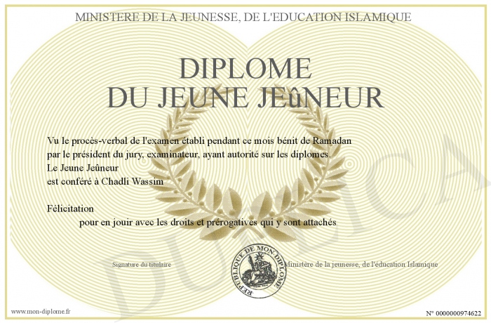 Envoyez par email votre Diplôme du Jeune Jeûneur personalisé