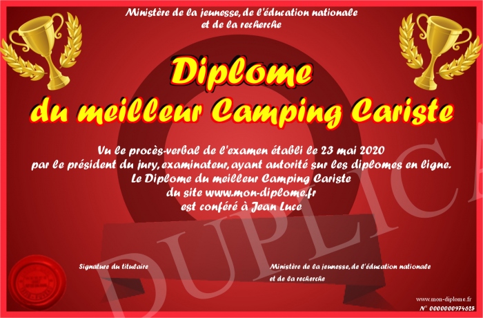 Envoyez par email votre Diplôme du meilleur Camping Cariste personalisé