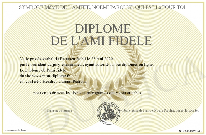 Envoyez par email votre Diplôme de l'ami fidèle personalisé