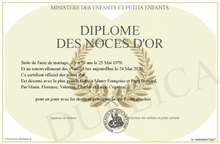 Envoyez par email votre Diplôme des noces d'or personalisé