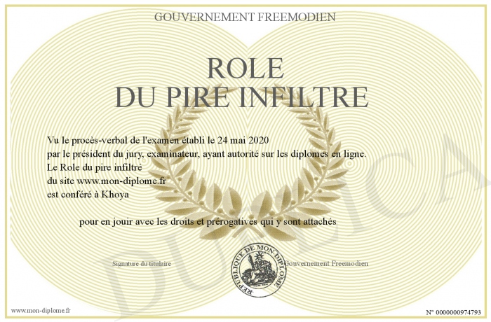 Envoyez par email votre Rôle du pire infiltré personalisé