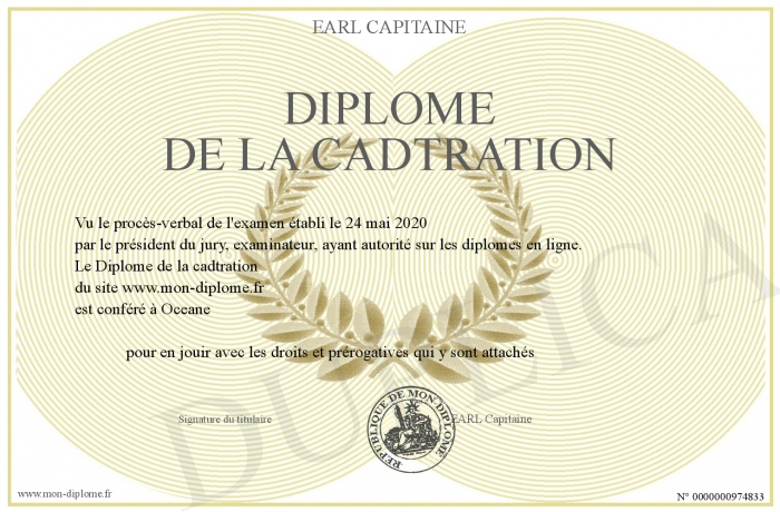 Envoyez par email votre Diplôme de la cadtration personalisé
