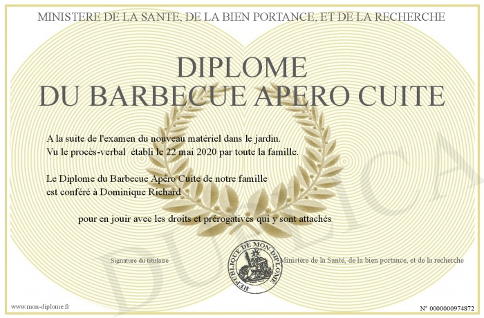 Envoyez par email votre Diplôme du Barbecue Apéro Cuite personalisé